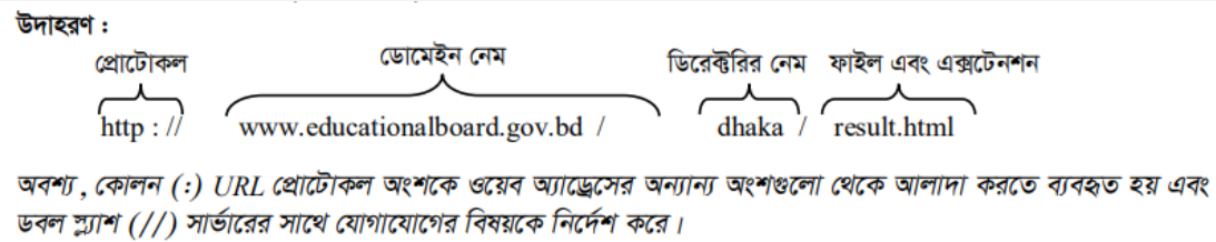 - প্রতিটি ওয়েবসাইটের একটি সুনির্দিষ্ট ও অদ্বিতীয় ওয়েব অ্যাড্রেস রয়েছে যার সাহায্যে কোনো ওয়েবসাইটের পেজগুলোকে ওয়েব ব্রাউজারে দেখা যায় বা খুঁজে বের করা যায়। আর এই ওয়েব অ্যাড্রেসই হলো URL. ।